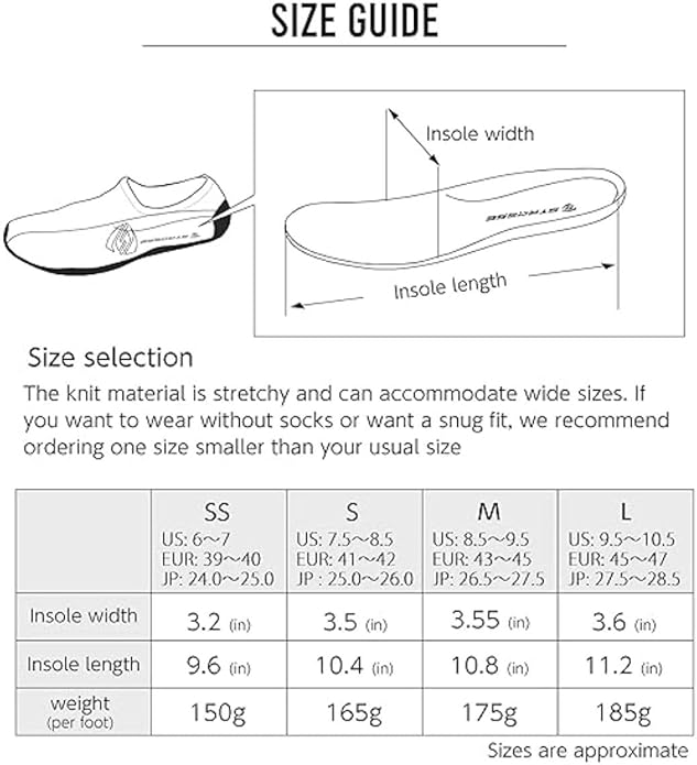 XS(US 6-7), S(US 7.5-8.5), M(US 8.5-9.5), L(US 9.5-10.5), XL(US 11.5-12.5) |